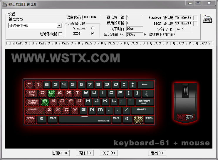 摩豹CK61 BOX軸機械鍵盤帶有全鍵無沖功能,并可以屏蔽Win鍵,為我們的游戲體驗帶來保證。鍵盤順利通過了外設天下的無沖測試:
