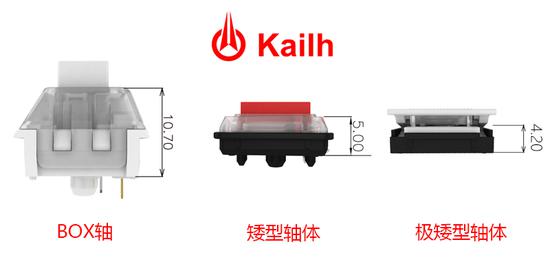 “矮軸相比凱華之前推出的KH半高軸來說更矮,但更核心的是它采用了BOX的技術,用綠色小推桿進行工作,大大增強了軸體的壽命以及手感一致性。首波矮軸整體尺寸,與傳統標準軸體尺寸相比,高度降低了50%。由于比較矮,沒有了BOX軸的盒子保護,防水防塵性沒有BOX強,但仍然是一款值得期待的軸體。”