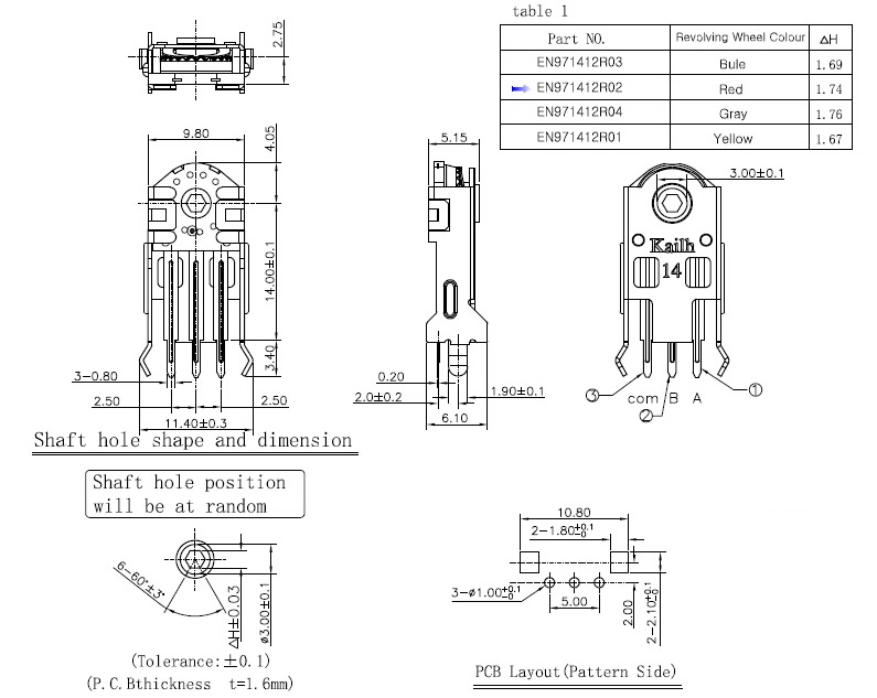 | CEN971412R01 | 14.0mm | 15-30gf.cm | 1.67mm | 300,000 Cycles | |||