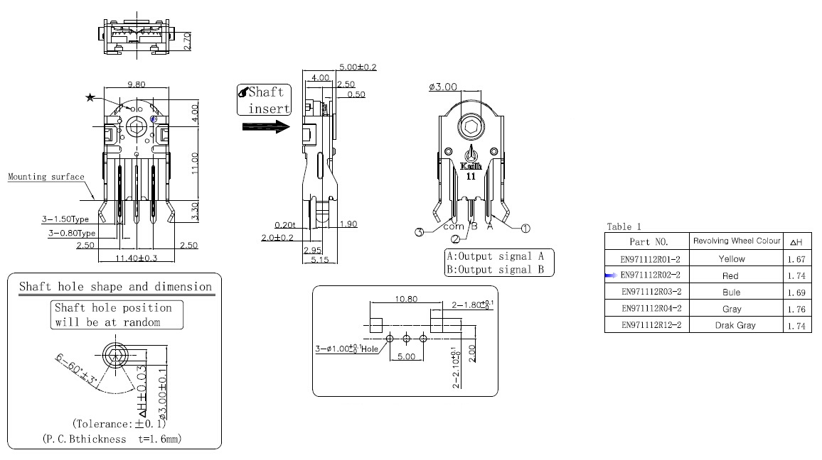 | CEN971112R12-2 | 11.0mm | 10-25gf.cm | 1.74mm | 300,000Cycles | rotary:grey | ||