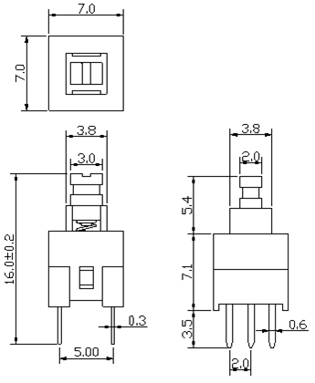 | CPG707110D03 | 7.0*7.0*7.1 | momentary no sound | 200±50gf | 6PIN | blue gray black |