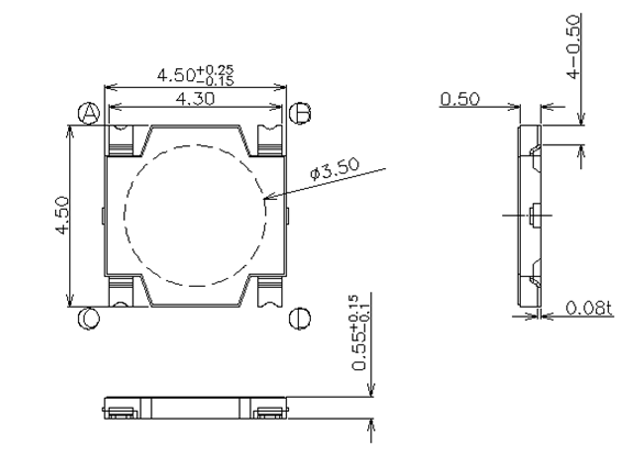 | CTA455501S01 | 4.5*4.5*0.55 | momentary | 160±30gf | 0.2+0.1/-0.05mm | 4 |