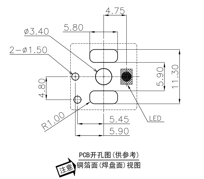 | 2.請使用1.6mm板厚的印刷電路板 |