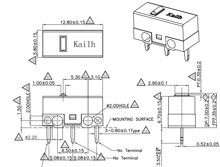 | CMI126703D180 | 15%-35% | 100±20gf | 0.30±0.2mm | 0.5min | 3,000,000Cycles |