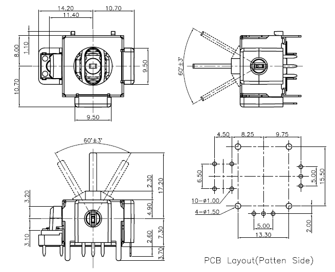 | CJP161219D01 | 5K,10k,20k,50k | "B"線型 | 300mV以下 | 120±50gf | 2,000,000cycles | . |
