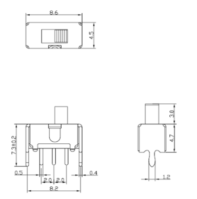 | CSL864709D01 | 200±100gf | 2.0±0.3mm | 3PIN | 插板式 | 10,000ycles |