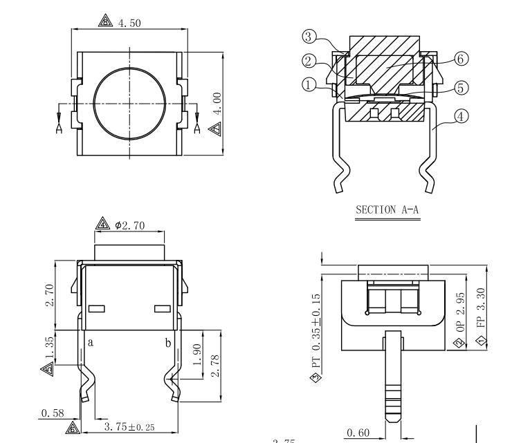 | CTA403301D02 | 4.0*4.0*3.0 | - | 90±20gf | 0.35±0.15mm | - |