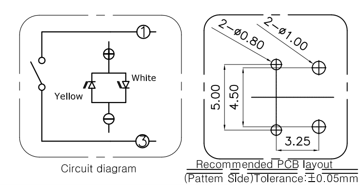 | CLA614801D01-HF | 6.10*6.10*7.0 | 觸動回復式 | 160±50gf | 0.25+0.05/-0.15mm | 4 | 黃白雙色燈 | ||||