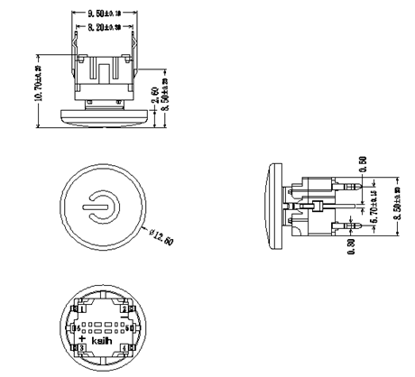 | 產品編號 | 圖片 | 外形尺寸 | 類型 | 克力 | 行程 | PIN腳 | 燈顏色 | 帽子形狀 | 鐳雕符號 | 規格書 |