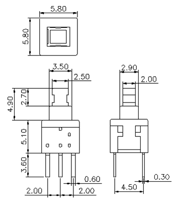 | CPG585110D01 | 5.8*5.8*5.1 | 自鎖 | 150±50gf | 6PIN | 白黑灰 | |||