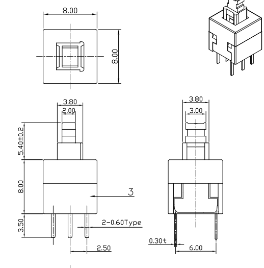 | CPG808110D03 | 8.0*8.0*8.1 | 無聲無鎖 | 200±50gf | 6PIN | 藍白黑 | . |